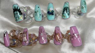 ピンク×ミルキーグリーン♡おばけしょがストを描いてみたこんばんは!Umiです☺️前回作ったゾンクラネイルの反対の手のデザインも完成したので紹介します🥀今回はあえて左右で雰囲気を変えたちぐはぐネイルにしてみました!前回とカラーを入れ替えた❝カ...